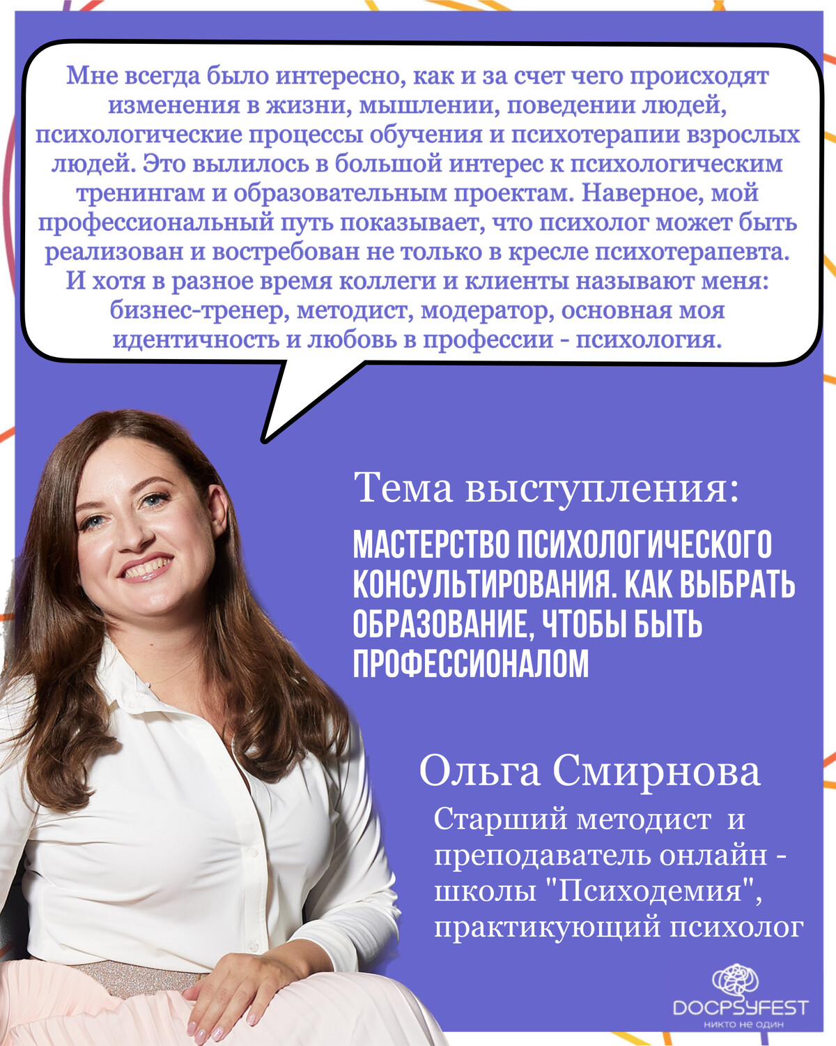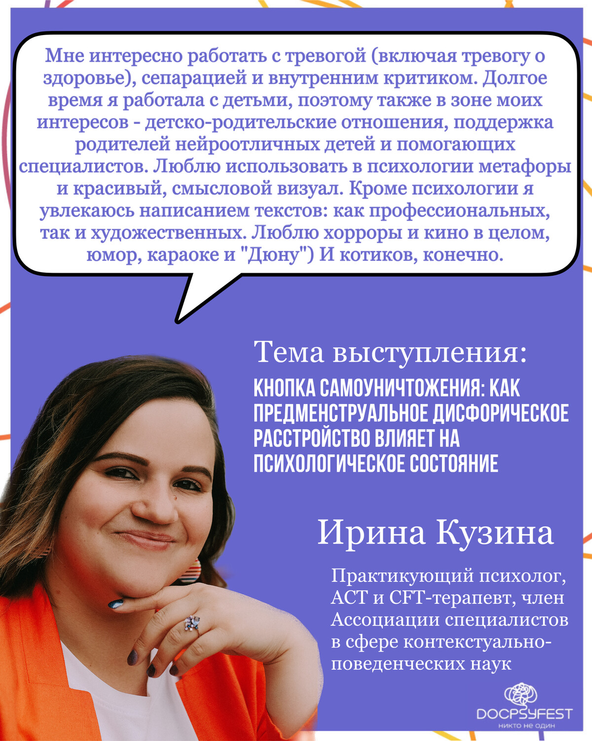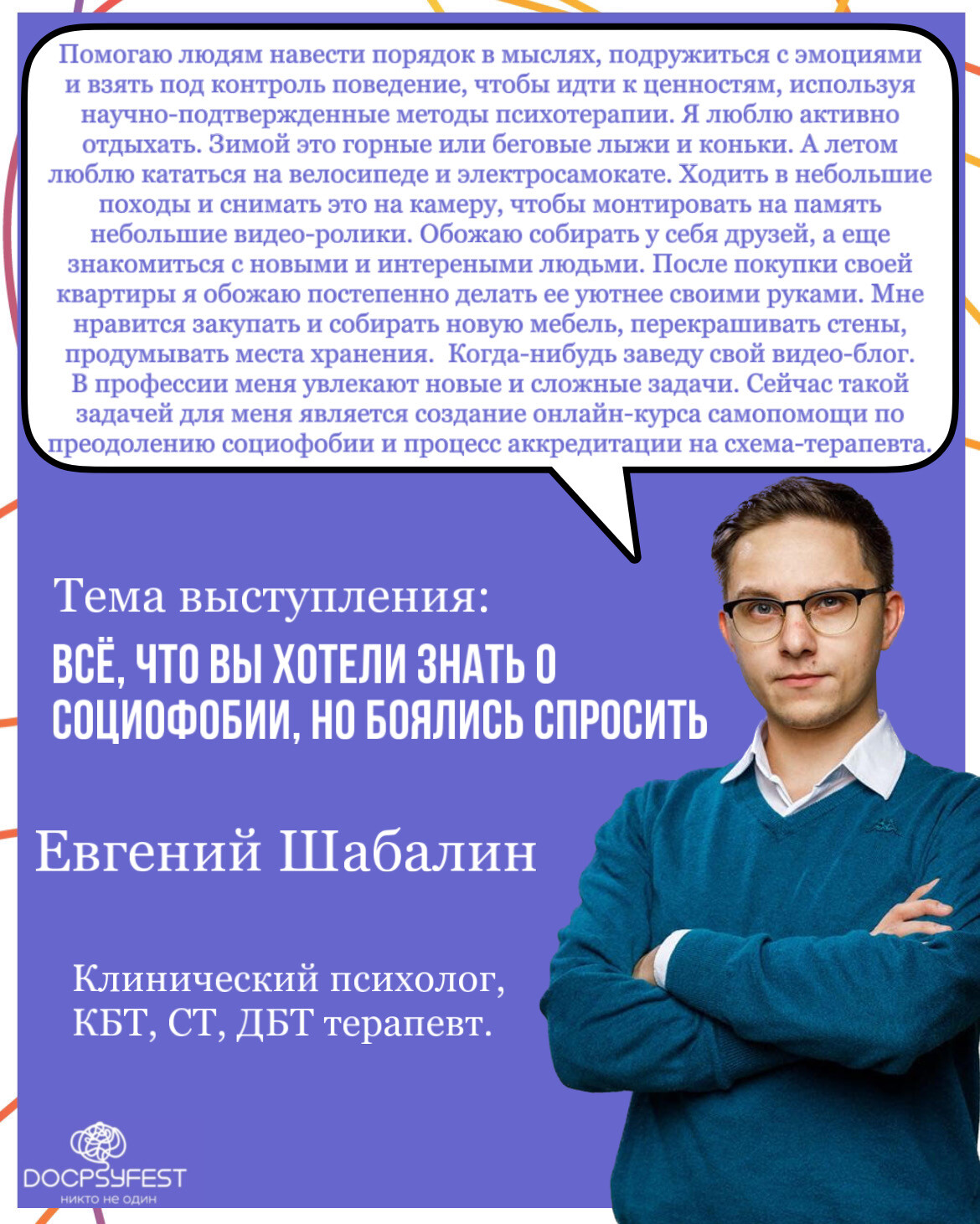 ДокПсиФест - это ежегодный онлайн-фестиваль ментального здоровья. Каждый год десятки ведущих специалистов в этой области (психологи, психотерапевты, врачи-психиатры) собираются вместе и рассказывают о современных и эффективных подходах к терапии психических расстройств и решению психологических проблем